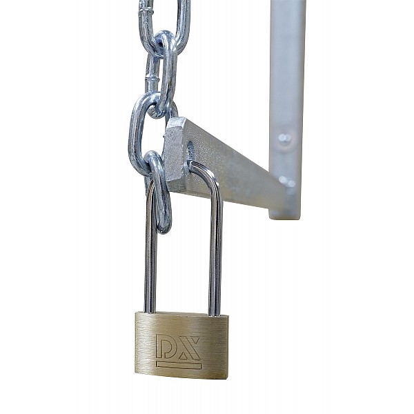 Hanging device for net winding bracket, lockable with padlock and mounting material - WITHOUT assembly -