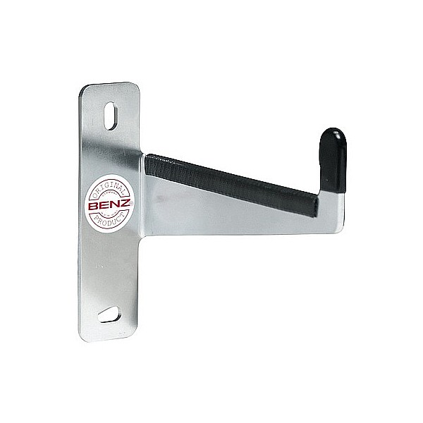 BENZ device holder / hanging device for wall mounting. This robust hanging device made of solid, galvanized steel is specially designed for wall mounting net hangers. With a hook length of 100 mm, it offers a practical and safe solution for storing sports and gymnastics equipment. The hanging device made of solid, galvanized steel is perfect for safely and permanently wall mounting and storing sports and training equipment. With a hook length of 10 cm, it offers enough space for a wide range of accessories. Specifications: Material: Solid and durable steel Surface: Galvanized for optimal longevity Hook length: 10 cm Number of fixing points: 2 holes Area of application: School Clubs Leisure