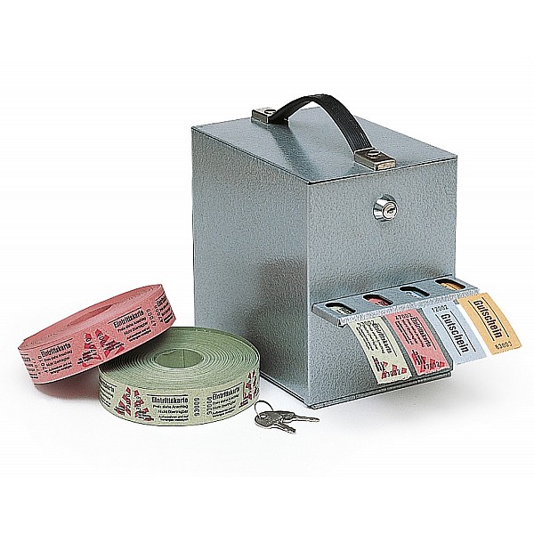 Sheet steel box with powder coating for four 1000 rolls (billet width 30 mm). With carrying handle, cylinder lock and 2 keys. Dimensions 25 x 14 x 20 cm.