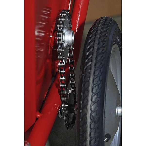 adjustable with hand lever spreading width 5 and 12 cm, ideal for wet, spongy places because of the large, pneumatic tires balloon wheels very easy to push. Quality, red powder coating. Equipped with Perlon-round brush and built-in agitator. Capacity about 35 liters. Weight about 24 kg.