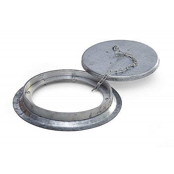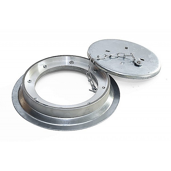 Aluminum frame, with galvanized lid for documents or casting with sports surface. The lid is theft-proof connected to the frame.