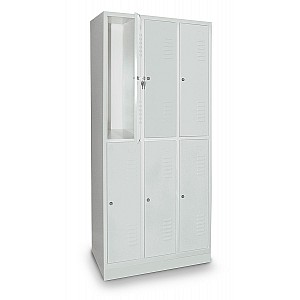 Clear opening each door W x H x D 360 x 895 x 460 mm. Inside: 1 clothes rail, 3 hooks. Sturdy sheet steel construction. Solid construction and clean processing. Base 150 mm high, depth mm 460th Carcass in RAL 7035 light gray. With reinforced doors and sturdy hinge. Vents. With cylinder lock and two keys.