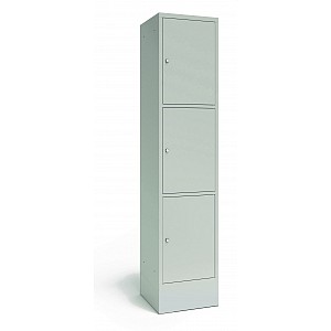 Locker 1er, 3 bins, RAL 7035, body in light gray RAL 7035 and doors in light gray RAL 7035, passage dimensions / door: (W x H x D) 360 x 580 x 460 mm, base height 150 mm, total height: 1950 mm, including cylinder lock and 2 keys