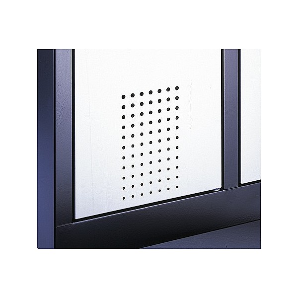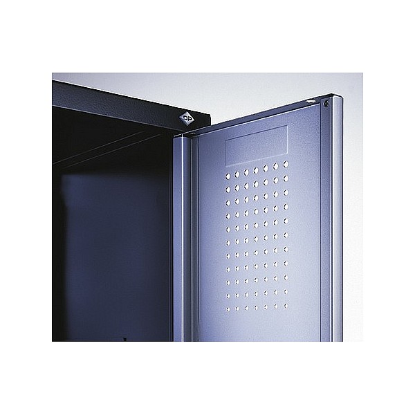 Doors closed profiles on the sides (extremely torsion-resistant!) Ergonomically designed turning bolt latch with standard lock guard galvanized cabinet base as standard, coated in housing color, corrosion resistant Easy-clean vent hole pattern due to smooth exterior Front (no protruding louvers).