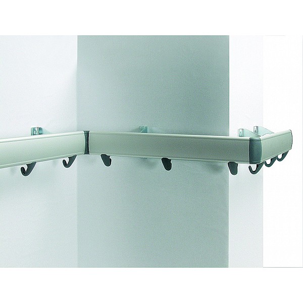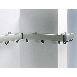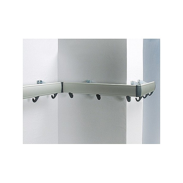 For connecting the wardrobe hook strips in the corners. Reversible 90 ° and 270 °.