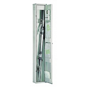 Standing cabinet steel sheet white, filled (W x H x T) 30 x 200 x 20 cm, lockable door, completely maintenance-free. Füllsortiment: 1 folding stretcher, emergency seat, rescue sheet, operating aid kit DIN 13157/2021, reflective emergency blanket, blanket and flashlight with red / green filter.