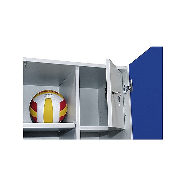 The doors are optionally available in a variety of decors. glued completely and equipped with quality fittings. Adjustable shelves and subdivision depending on type. Available, allowing the doors color gray red, blue and beech This system series to compile a customized equipment cabinet wall forming a unified front cabinet including the cabinet teachers. Very solid and stable construction made of 19 mm melamine-faced boards, body color RAL 7035 light gray. The doors are optionally available in light gray, red, blue or beech. The cabinets are fully bonded and equipped with quality fittings. Adjustable shelves and subdivision depending on type. All models feature a multiple-rotation rod closure with high-quality cylinder rotary handle lock. Door opening max. 270 degrees. By the almost unlimited expandability of combining and cabinet systems of multiple uses are na