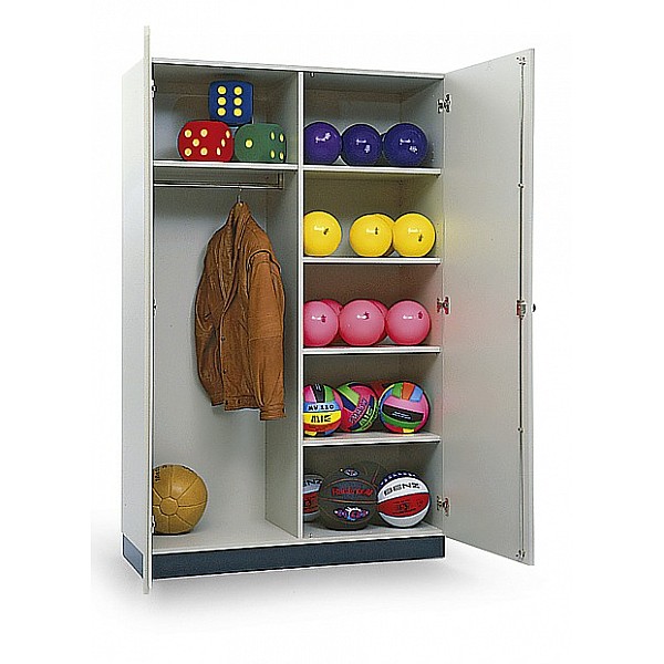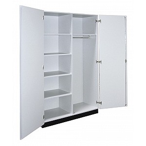 The doors are optionally available in a variety of decors. glued completely and equipped with quality fittings. Adjustable shelves and subdivision depending on type. Available, allowing the doors color gray red, blue and beech This system series to compile a customized equipment cabinet wall forming a unified front cabinet including the cabinet teachers. Very solid and stable construction made of 19 mm melamine-faced boards, body color RAL 7035 light gray. The doors are optionally available in light gray, red, blue or beech. The cabinets are fully bonded and equipped with quality fittings. Adjustable shelves and subdivision depending on type. All models feature a multiple-rotation rod closure with high-quality cylinder rotary handle lock. Door opening max. 270 degrees. By the almost unlimited expandability of combining and cabinet systems of multiple uses are close