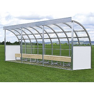 The EUROPA coach and player booths are made of very stable materials and are an eye-catcher for every sports field. They are available for 6, 8, 10 or 13 people. With red plastic seats or a bench made of wood - with polycarbonate or acrylic glass panel. The side and back panels provide enough space for sponsors prints and advertising. Execution: 13 people Dimensions: 6.46 x 2.06 x 1.25 m Players cabins offer the following advantages: Elegant arc shape on a sturdy aluminum base frame wood floor grate Stable benches made of wood planks or comfortable plastic seat shells resistant pane of polycarbonate sheets or clear acrylic panels The discs are individually interchangeable Absolutely weatherproof and resistant Lei
