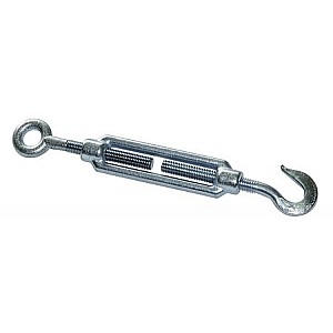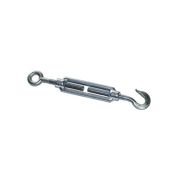 M turnbuckle 10. One side of eyelet, a hook side, with 3 mm cable clamps for rope Ø 4, galvanized. Without a rope.