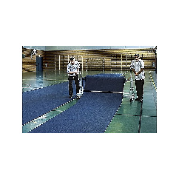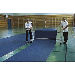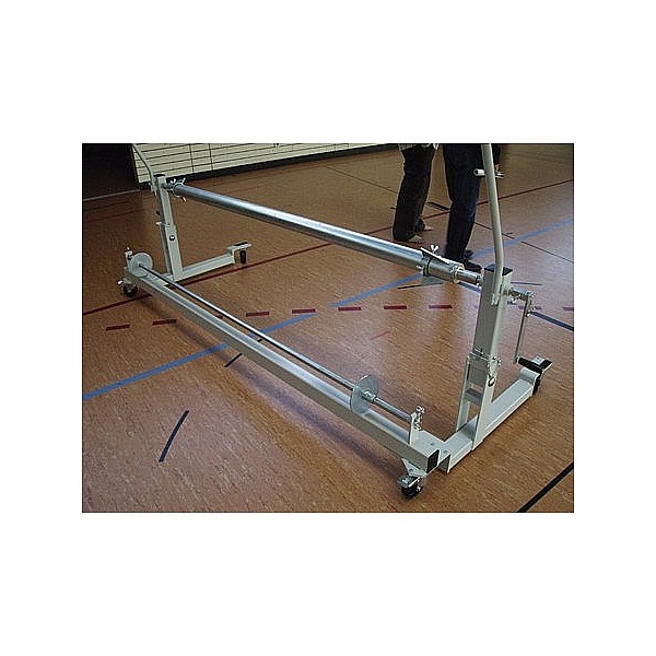Sports ground and sports floor protection pads for 2 m fabric width. The coating is manually wound by 2 winches. Inkusive round tube 76 mm, complete. with the guide rod 2 and Rollenzentrierungen. Overall width: 2.78 m, depth 1:03 m, height 1:46 m.