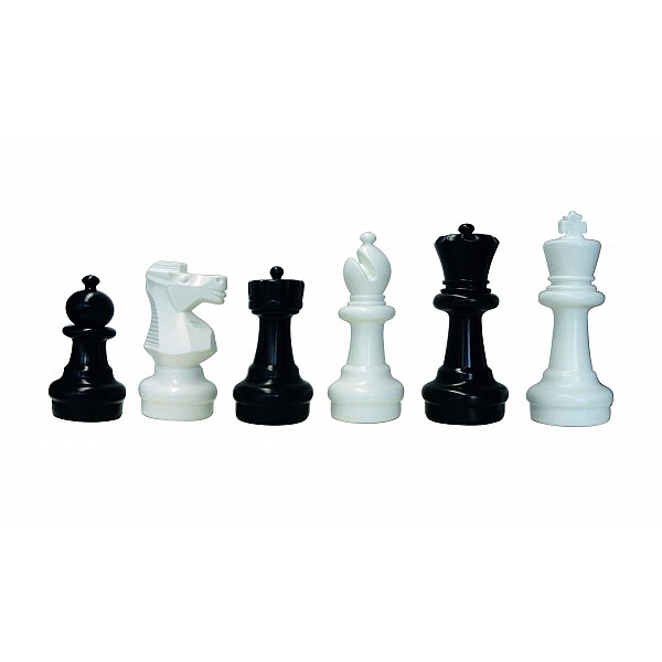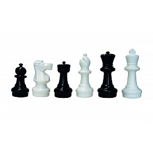 2 x 12 blocks of white and black plastic, diameter 25 cm, height 8 cm. Stones are stackable and can thus be used as a lady. With the supplied Alustäben two superimposed set stones can be moved easily.