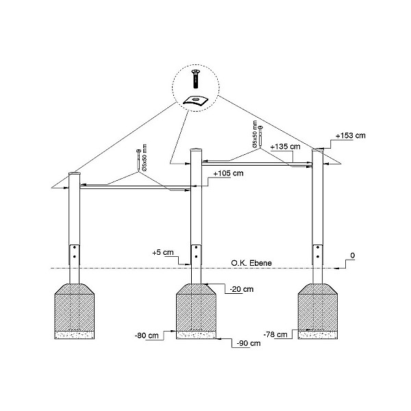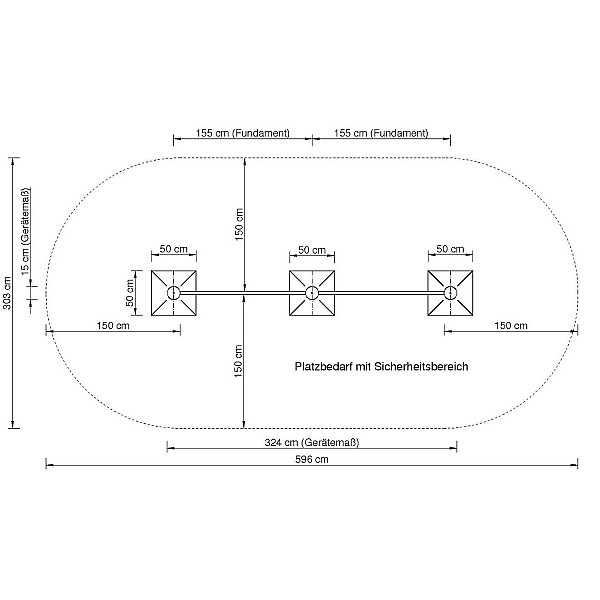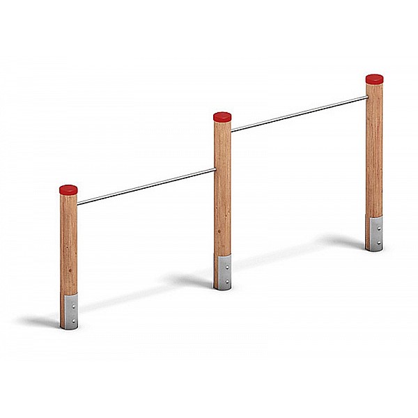Dual Reck, (L x B x H) 3.24 x 0.15 x 1.53 m, 125 kg, lined up wood / metal, galvanized pole shoes, 2 x stretching rods of metal, posts of round wood