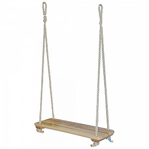Hardwood seesaw board, 46 x 17 x 3 cm. With 2 reinforcement bars and 4 holes to loop the swing ropes through. Incl. 2 rope loops (approx. 60 cm) for attaching the swing ropes. Swing ropes available separately. Suitable for up to 50 kg.