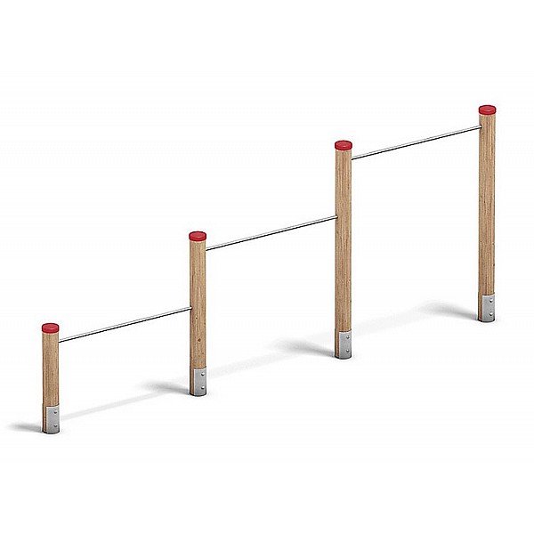 Triple Reck, (L x B x H) 4.79 x 0.4 x 0.3 m, 160 kg, wood / metal, galvanized pole shoes, 3 x stretching rods of metal strung together, posts of round wood