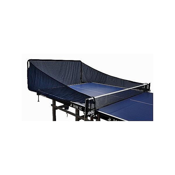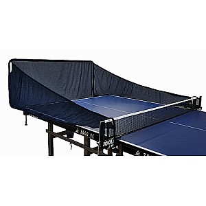 Catch net for table tennis robot iPONG. Easy and quick mounting at the end of the table with a side net construction. The collected balls fall into a container (not included) via an opening. This simplifies the refilling of balls into the ROBOT iPONG.