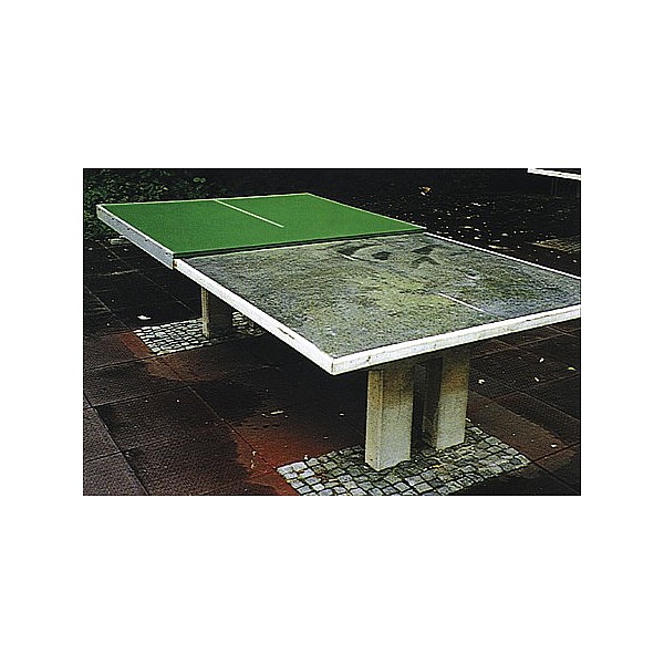 Two plate halves of polymer concrete with aluminum edging for an all over sticking to old concrete table tennis tables. No demolition or dismantling of the existing plant necessary. Time about 30 minutes. Incl. Aluminum mesh (8 mm). Sanierungsset only for tables with dimensions 274 x 152.5 x 76 cm Measure each plate half 154 cm x 137th