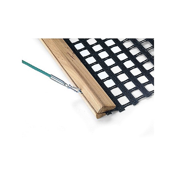 With extra heavy special PVC fabric, wood rail and tension cable. Working width of 200 cm, depth cm network 150th