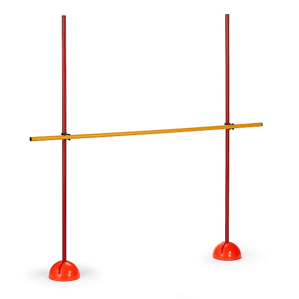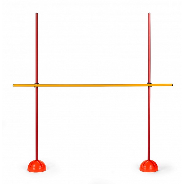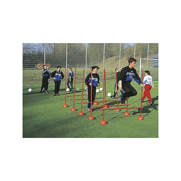 suitable for all sports. Trainers and athletes have an unlimited application possibilities in the use of these hurdles (football, athletics, handball, field barrier, etc.). The base is made of unbreakable plastic, by its weight he has optimal stability. The joint braces stopped in any position by spring clip. The cross bars can thus be obliquely positioned. 1's set consists of 2 legs, 2 brackets 3 bars, length 160 cm.