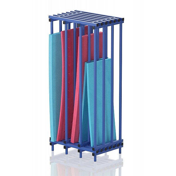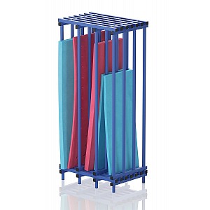 Mobile plastic loading racks 105x73x230 cm, blue, for wet areas. Large compartments for Schmimmbretter and / or other Acessoires, stainless high standard of hygiene, freight collect ex works.