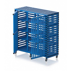 Plastic box 12 compartments, 176x76x192 cm, mobile, for wet areas, with removable and adjustable shelves, stainless kg with a high standard of hygiene, Gewicht100, unfree ex works