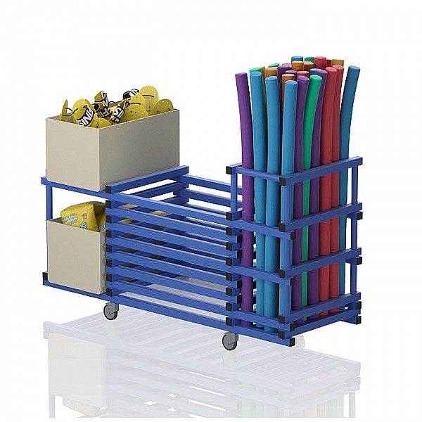Plastic trolley cm without lid, 198x69x111, blue, with two extra shelves for water equipment, stainless high standard of hygiene, weight kg 32, unfree ex works
