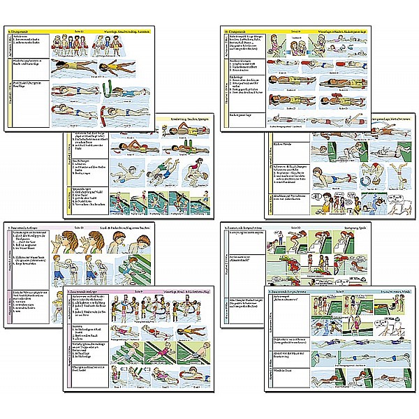 Plastic ring binder "learning to swim in 12 hours," different (ring binder can change in color), green cover, 444 g, 23 tacked laminated cards (waterproof), double-sided color with about 800 illustrations, lots of foliage, Target group: school, learning / Other, early childhood education, physical education, swimming and diving, teaching and didactic qualifier for educational purposes, for pre-school to secondary education, textbook, script