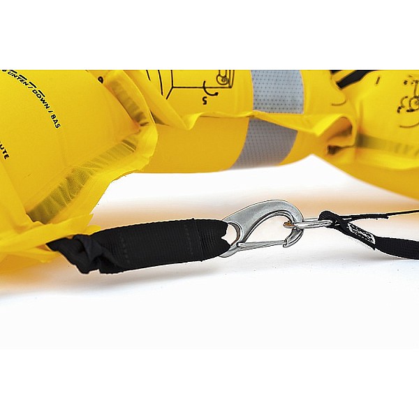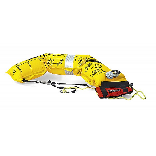 Also, the life is packed guard (x 10 x 7 cm 16) in a small bag and is worn around the waist. Pulling the trigger, the buoy inflates within a few seconds. The buoy has 2 kinks, so that the buoy placed around the body of the injured person and can be fixed by means of karabiners 4 eyelets. Especially helpful is the quick release buckle. If the rescuer at the foreign rescue themselves come in a dangerous situation, he has the ability to break quickly and completely from RESTUBE Lifeguard. Especially handy reflector strips more visibility in the dark are.