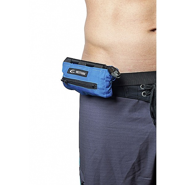 By pulling the trigger, which also serves as a whistle, the buoy blowing by means of a screwed-CO2 cartridge in a critical situation immediately. Now you have time and can remain calm. The sturdy bag (14 x 7 x 5 cm) with a split pin and the replaceable safety harness can be worn directly on the trapezoidal or belt. RESTUBE sports has been developed for the harder use and ideal for kite surfing, windsurfing, surfing or SUP. RESTUBE sports can for any other activity on and used in the water. The buoy has a buoyancy in the inflated state of 75 N, which corresponds to about kg. 7 reusable by simply installing a new gas cartridge. RESTUBE sports is both horizontally and vertically fixed to the belt. It can also be attached directly to the harness with his X-mount system. The belt may have a width of 25 to 50 mm have, so it can be shipped threaded directly on the use of belt