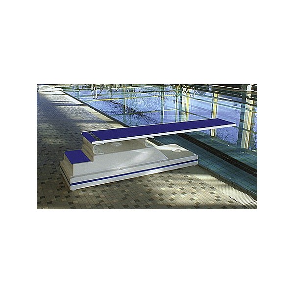 Mobile GRP jump plant with 200 l. built-in water tank. Sufficient counterweight also available for jumps of adults. Dimensions: Board length 250 cm, length 280 cm, Brett supernatant 90 cm, height 60 cm, width 50 cm, weight approximately 80 kg. Required water depth about 3 m.