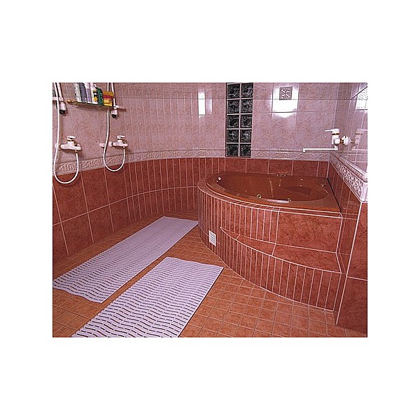 This flooring made of colored and recyclable PE plastic is hygienic and reliable protection against fungal infections through the use of antibacterial and pilzverhindernder additives and is resistant to temperatures of minus 40 ° C to the sauna heat. Due to the special Stand construction, a water drainage is guaranteed at all times. It is easy to clean, making it ideal for saunas, solariums, swimming pools and changing rooms. 600mm wide, max. Roll length = 15m. Price per cm