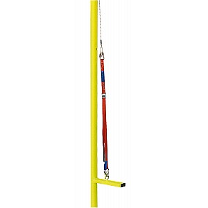 For badminton racks standard. Two-piece, with clamp, both ends with hooks. Polyester tape 25 mm wide, clamping lock side: 25 cm strap. Strap with hook: 120 cm strap.