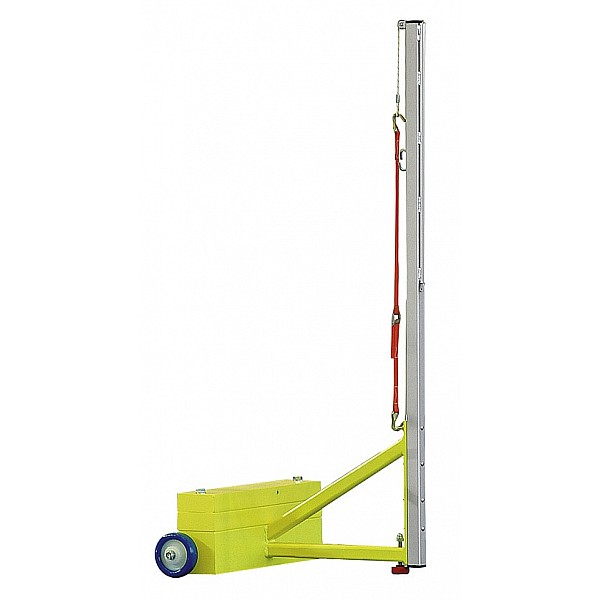 Affixed measuring scale with markings for :. Prellball, 2 / 4p (35/40 cm). Tennis (107 cm). Tenniquoits (150 cm). Badminton (155 cm). Fistball (200 cm). Women volleyball (224 cm). Volleyball Men (243 cm)