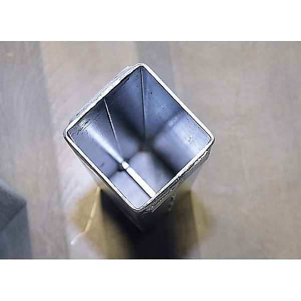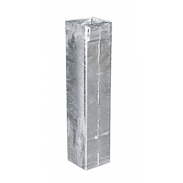 Galvanized, for indoor and outdoor. Suitable for columns made of rectangular steel tubing, 10 cm x 10th External dimensions approximately 110 x 110 mm, height 49 cm, kg weight. 7