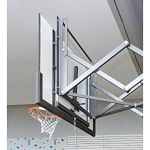 For main and cross the field, according to. pulled up with an electric motor to the ceiling. Steel frame in hinged storage. Height of 6.88 m to 7.38 m. No engine, stem, backboard, basket, net and tie replacement.