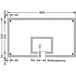 Only FIBA ??system, 105 x 180 cm, 12 mm thick, white marking according DBB / FIBA ??regulation. With glass cutting for basket, holes for fasteners and fastening kit.