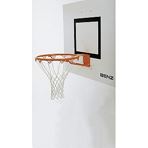 Basketball basket, removable, coated, according to international regulations, with safety net hooks, incl. Retaining plate with lateral guide in which the basket is pushed in, the locking screw against unintentional lifting, incl. Fastening screws. No power.