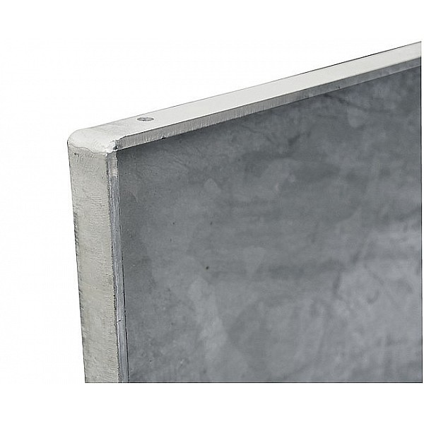 Super stable, hot-dip galvanized, weatherproof, bended steel board, 142 x 100 cm, 103 kg. By strongly dimensioned sheet thickness of 8 mm no rumble and flutter, etc. This makes almost no noise pollution and also optimal for residential areas. Can be used for weight reasons only for the A-pillar system.
