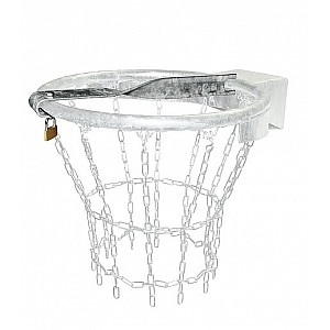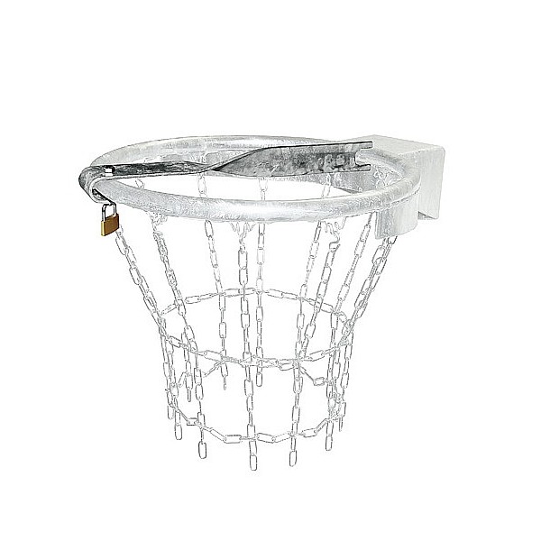 Basketball basket, removable, hot dip galvanized, by international regulations, with safety net hooks, incl. Retaining plate with lateral guide in which the basket is pushed in, the locking screw against unintentional lifting, incl. Fastening screws. No power.