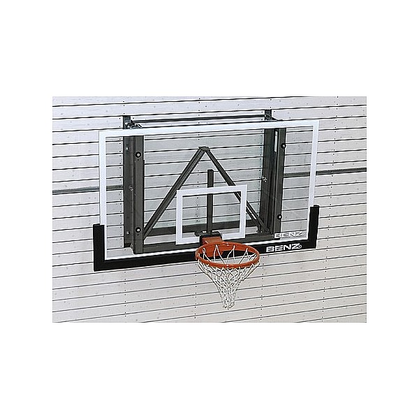 BENZ basketball practice system in rigid design, not dunkable. Direct attachment to the wall with 50 cm wall clearance. The flat steel construction is galvanised. Suitable for a board size of 90 x 120 cm. Supplied ex works, without board, basket and net.
