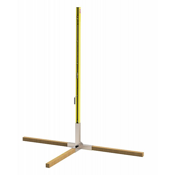 The ground frame is used to set up a mobile beach volleyball facility in combination with the removable beach ground sleeves Multi-Flex and wooden beam sets. This system can be used very flexibly and regardless of location. Perfect for events and temporary locations. To set up a beach volleyball facility with this system, two ground frames and two wooden beam sets are required. The two removable ground sleeves are attached to the fastening of the ground frames and the wooden beam set is pushed into the outriggers of the T-piece of the ground frame. Afterwards, the attachment and the wooden outriggers are covered with sand and filled up. The net posts can now be inserted into the ground sleeves and the net tensioned.