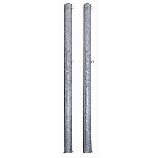 Two very stable game posts of galvanized, powder-coated steel tube (80 x 80 mm) for camping and unattended locations. Height adjustable from 1500-2430 mm net height, with different network attachment points. Tensioner Galvanized turnbuckle is completely covered by a metal cover and secured with padlock (not included).