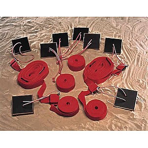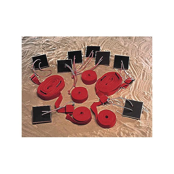 27 x 12 m, professional version includes: 2 bands side lines A 27 m, 2 bands goallines á 12m, 2 bands crease lines mm á 12m reinforced PP webbing 50, 8 glass fiber reinforced plastic corner elements DBGM, 8 sand anchor plates with bungee tensioning line. Red color.
