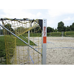 With the BENZ beach handball goal, you can bring handball outdoors. The 3 x 2 m goal is firmly concreted into the ground with ground sockets and the court is filled with sand. Details: Dimensions (H x W) 3 x 2 m Post and batten made of special aluminium profile 80 x 80 mm. Silver anodised surface Standing in ground sockets Net hoops firmly screwed to goalposts With tube end caps and plastic net hooks Supplied without net and ground sockets. Also available painted in other colours on request. Please contact us for your desired paint finish.
