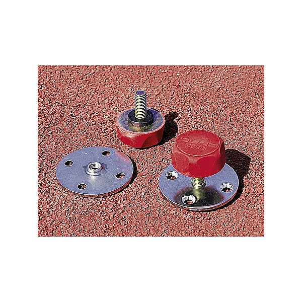 To door anchorage on the floor, or ground anchor for fastening starting blocks, 30 mm thread length. Floor mounting plates are set into the floor covering / hall floor and bolted. the gate or the starting block is anchored in the stable security screws. (Without base mounting plate)