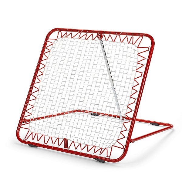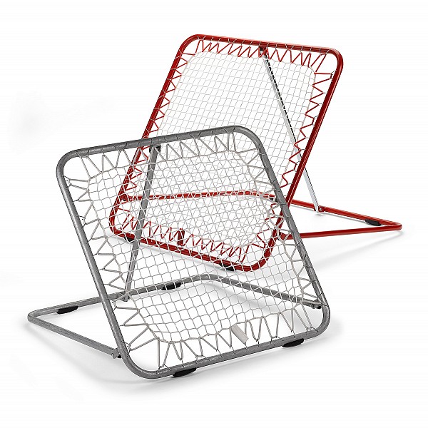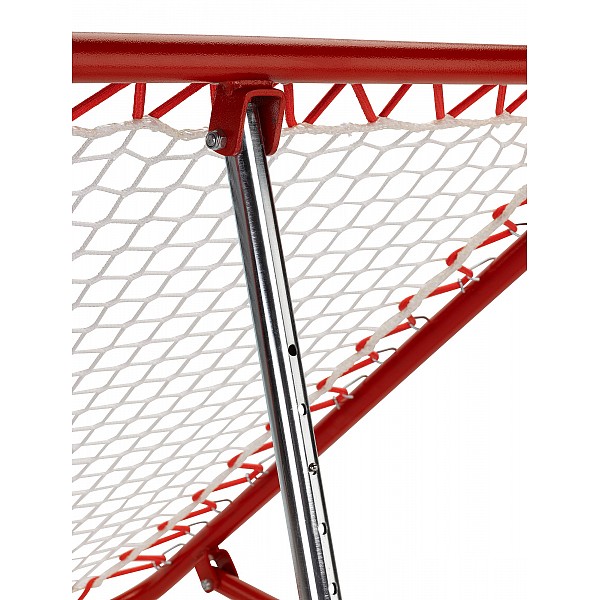 3-fold in the angle-adjustable, powder coated red, rugged power with high rebound force. Frame 120 x 120 cm red powder-coated, stable steel frame, non-staining with 4 rubber buffers. Extremely robust network with high rebound force inside dimensions 90 x 90 cm.