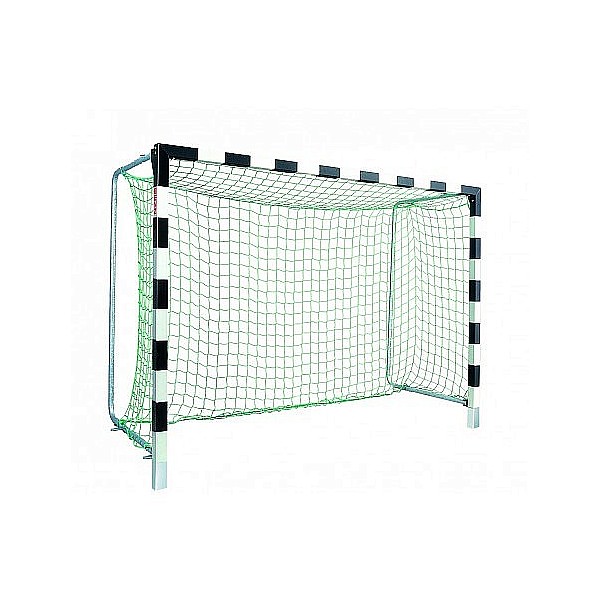 Reinforcement bracket gives the door frame an enormous stability. All screw connections are equipped with self-fuses. The net supports are made of thick steel pipe, hence the gate receives a unique status. The net is suspended freely between the net supports. Each net support is provided with the proven mounting tabs? now taken over in this design in the DIN. Complete with pipe end caps and plastic net hooks for easy installation. For halls. Varnished and foldable net supports, four bottom flaps. According to DIN EN 749, IHF-certified. No power.