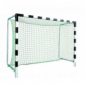 3 x 2 m, posts and crossbar made of special aluminum profile, 8 x 8 cm standing in ground sockets, taped corner. Surface silver anodized. Galvanized, firmly bolted to the goal post net hoop. Complete with pipe end caps and plastic net hooks. and without power. Ground sockets.
