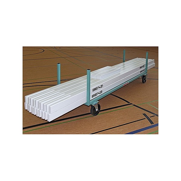 For easy transportation of hockey tape parts. Sturdy steel frame construction with 2 swivel castors and 2 fixed castors Ø 200 mm . Capacity for 20 barrier elements.