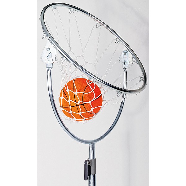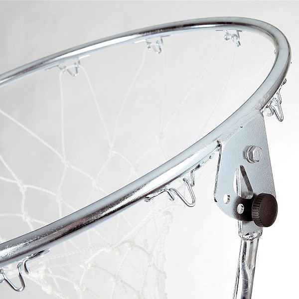 Tubular steel design with steel base Ø 59 cm, hoop and net, according to regulations. In the amount from 2.0 to 2.5 m adjustable. Weight 13.2 kg